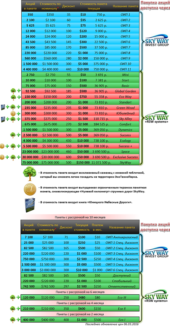 Пакеты акций SkyWay доступные к покупке